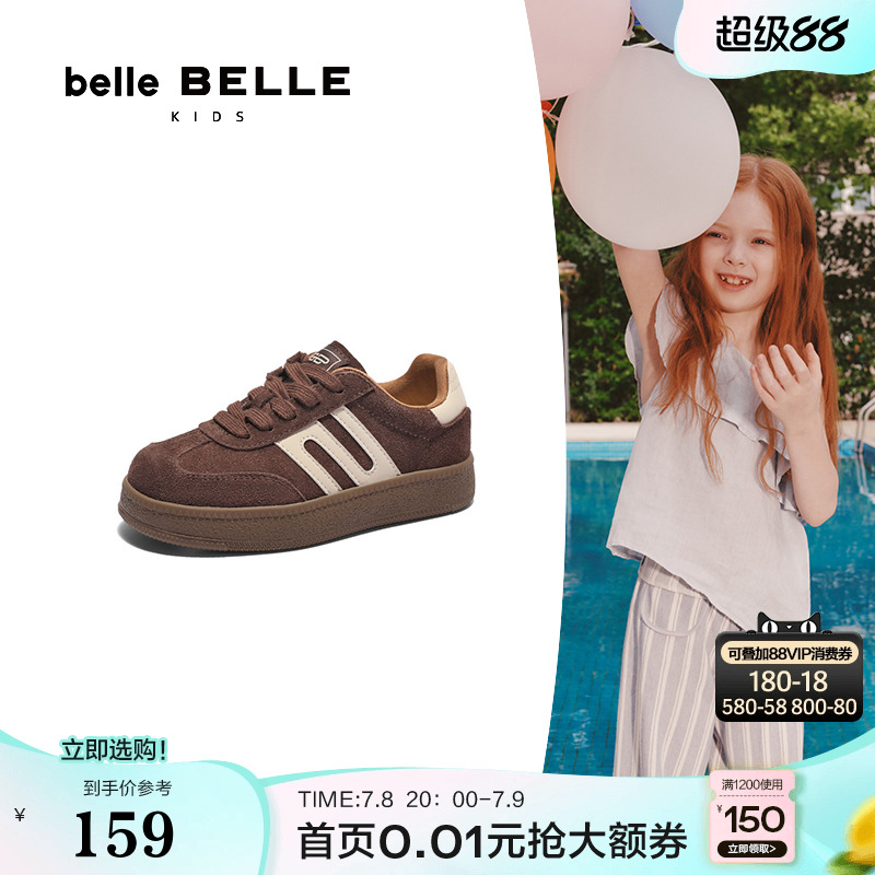 百麗板栗童鞋復古跑道阿甘鞋德訓鞋大童運動休閑兒童板鞋3791DA85