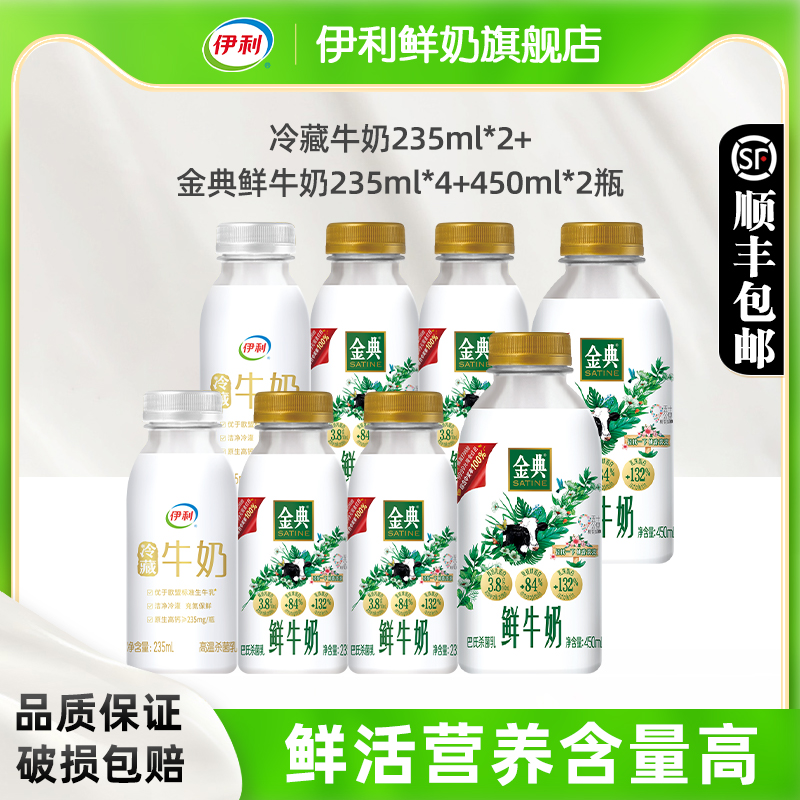 伊利金典鮮牛奶450ml*2+金典235ml*4+冷藏牛奶小白瓶235ml*2
