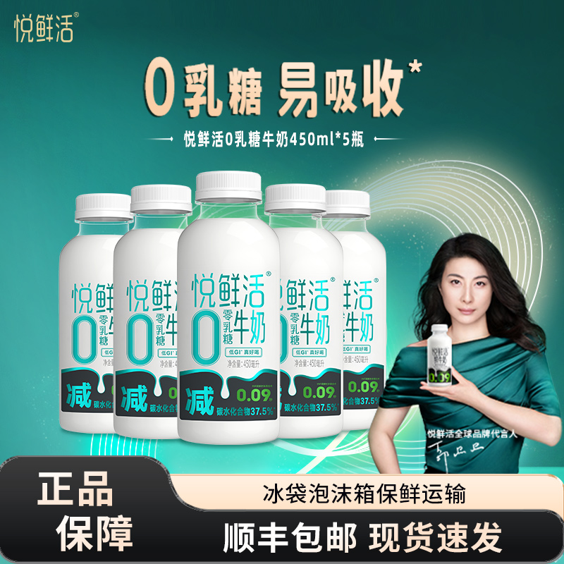 悅鮮活0乳糖牛奶450ml*5瓶低溫營養早餐牛奶正品旗艦店