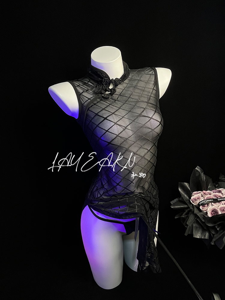 LAYEARN【酒肆風情】古風新中式改良旗袍性感黑絲網紗透視內衣女