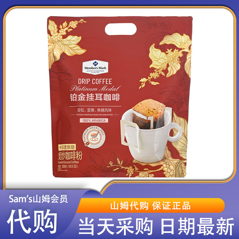 山姆會員超市代購鉑金掛耳咖啡速溶粉中深烘焙咖啡豆沖飲袋裝30包