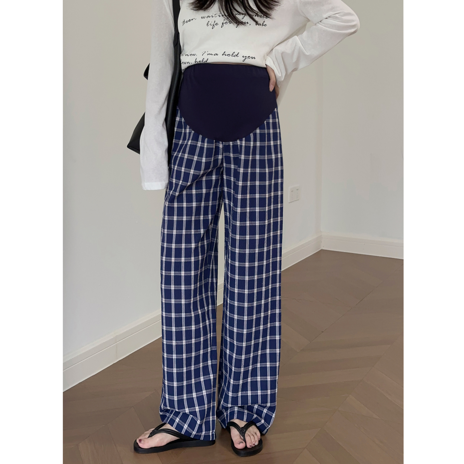 格紋孕婦闊腿褲子春夏季2025新款外穿不勒肚子垂感拖地托腹褲春秋