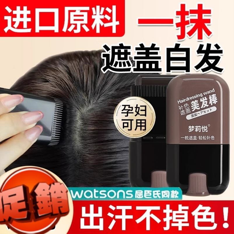 屈臣氏正品棒涂遮蓋白發不掉色防水汗黑根補色植物刷補發
