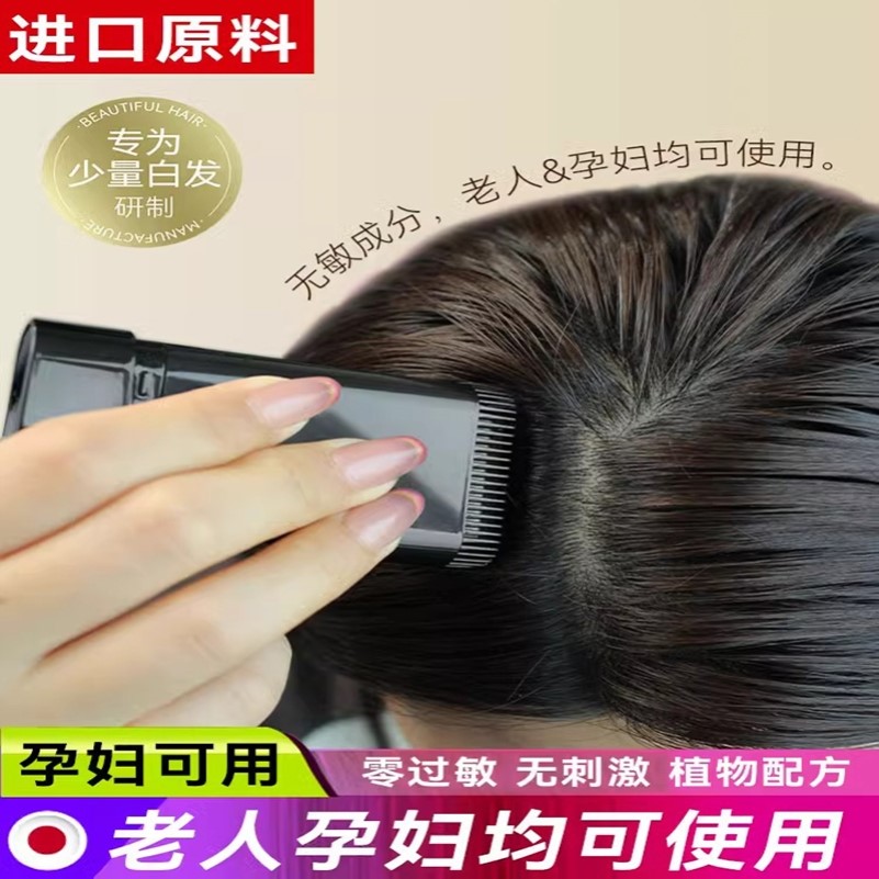 網紅同款日本一梳黑梳髯發棒植物不掉色補發色黑發根遮蓋白發