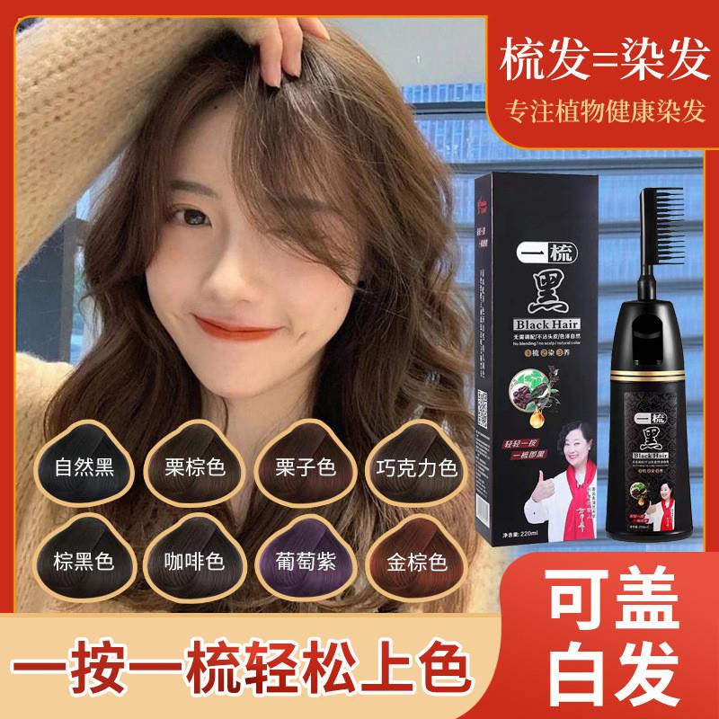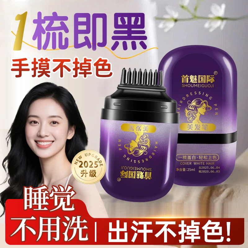 首魅國際美發筆自帶梳齒一梳蓋白簡捷方便不掉色植物萃取不傷頭皮