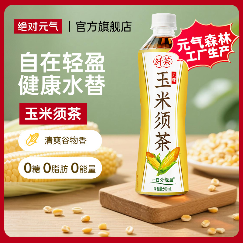 絕對元氣無糖纖茶玉米須茶植物飲料500ml*15瓶0糖0脂0卡茶飲料
