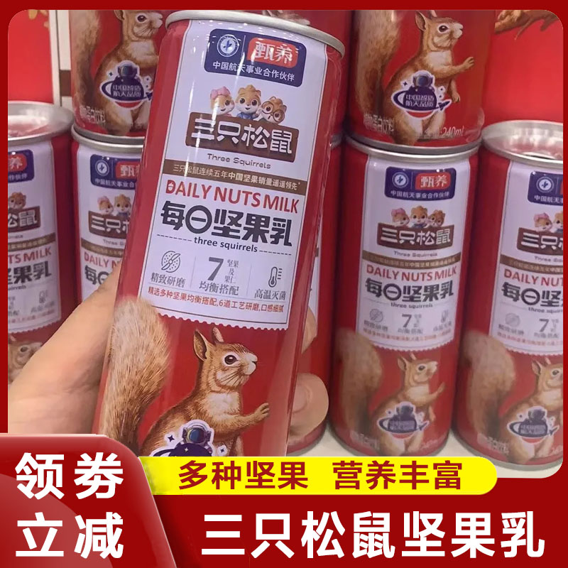 三只松鼠堅果乳240ml每日植物蛋白核桃杏仁學生早餐奶一整箱旗艦