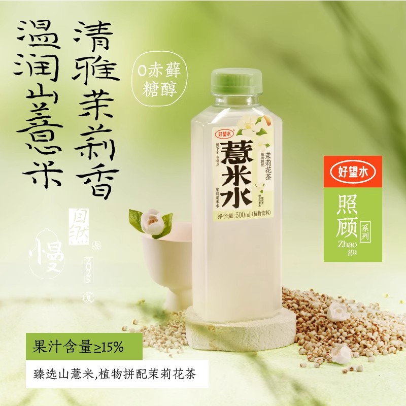 好望水檸檬薏米水茉莉花茶薏米水500茉莉瓶裝0糖0脂0添加植物飲料