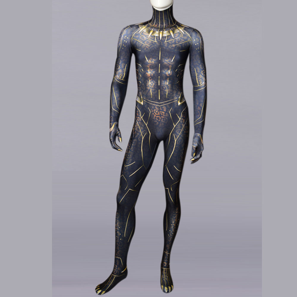 男款金色國王埃里克金錢黑豹連體緊身衣Cos角色扮演衣服套裝