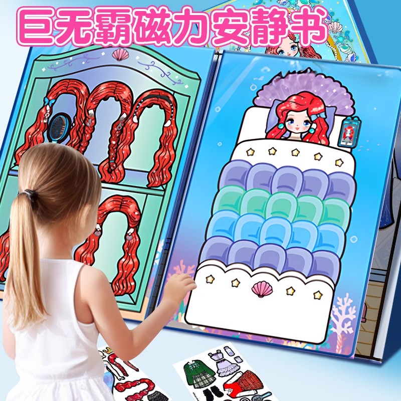 巨無霸磁力艾莎公主安靜書美人魚手工diy材料磁力貼立體貼畫兒童