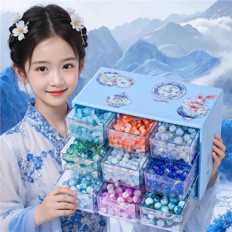 女孩子生日禮物兒童爆款玩具9女童手鏈串珠diy6以上古風六一禮物