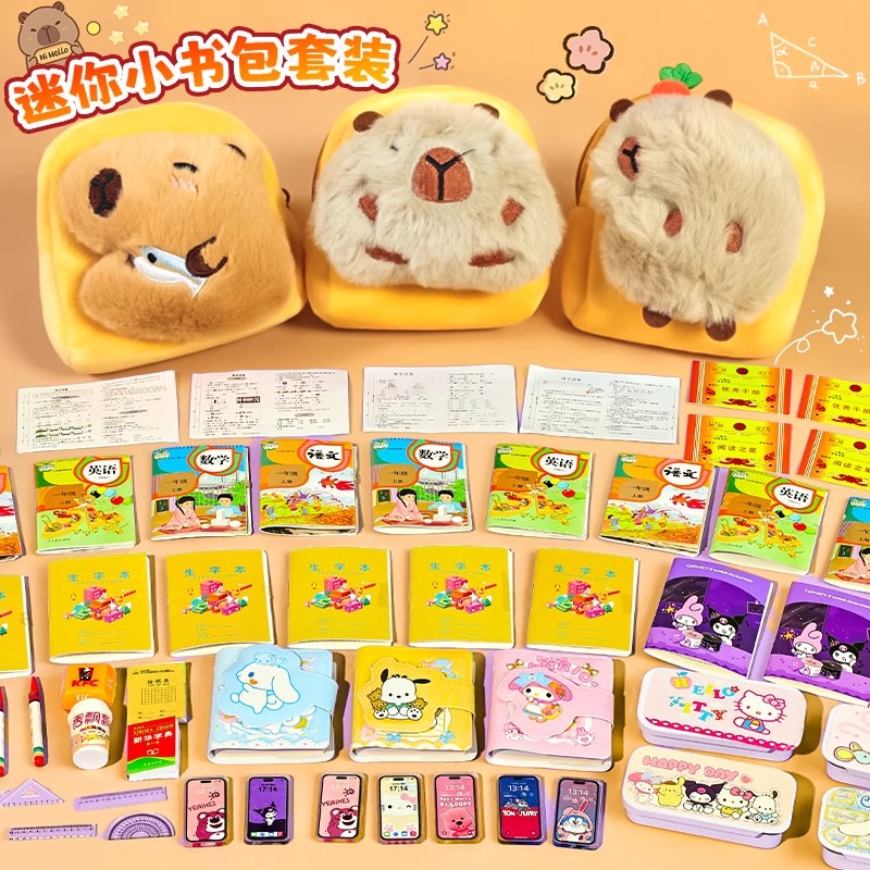 卡皮巴拉迷你小書包斜跨微縮兒童包包玩具女孩小學生可背文具全套