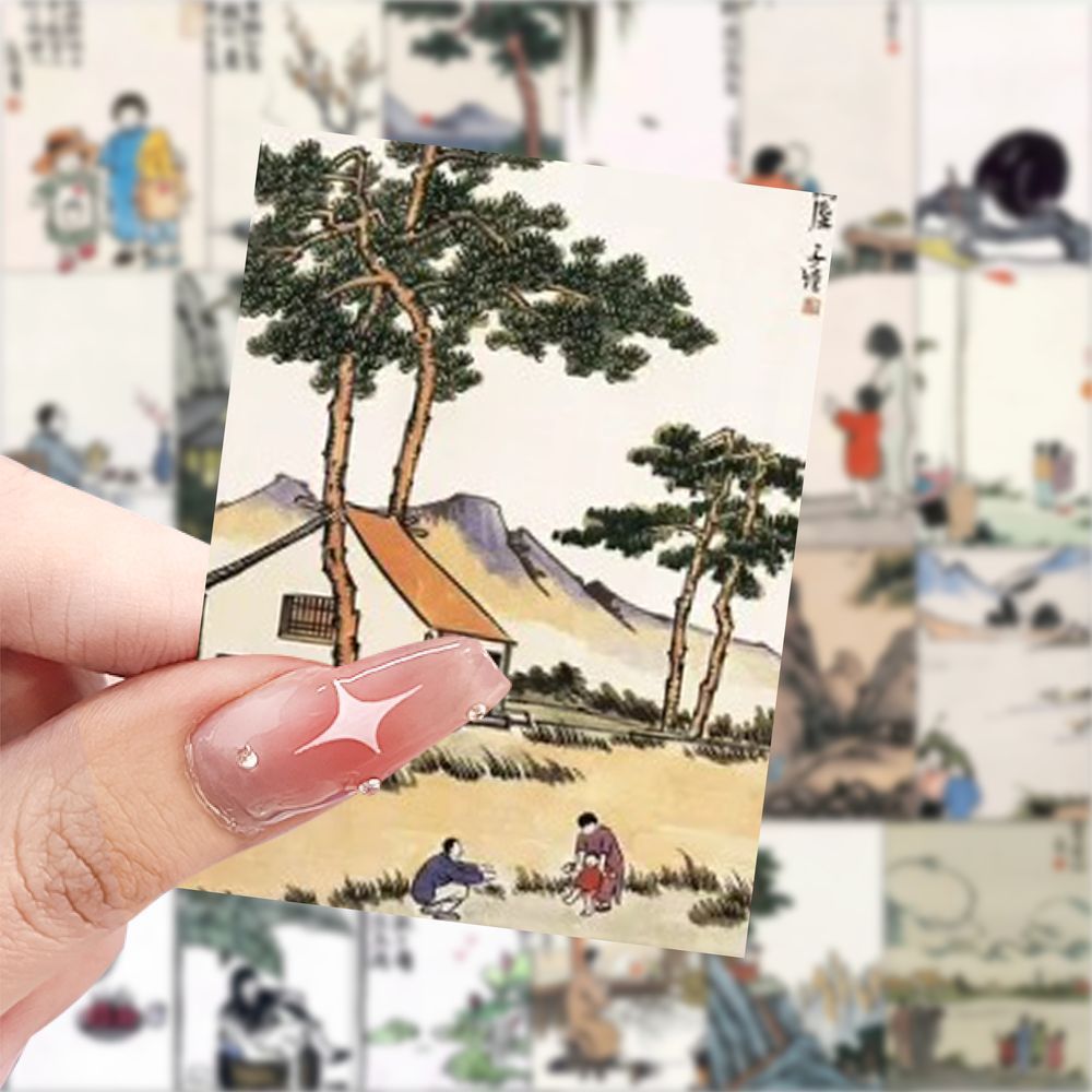 【大圖釋官方授權】126張漫畫集國風治愈古風創意貼紙桌面水墨裝飾貼畫手賬diy自粘手機殼行李箱玩具防水標簽