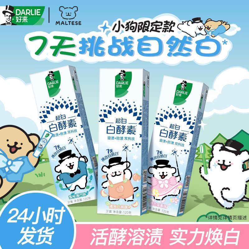 【線條小狗聯名款】好來原黑人白酵素牙膏依蘭梨花含氟清新口氣