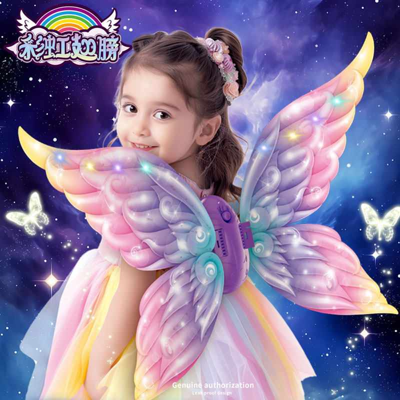 會發光的彩虹精靈蝴蝶翅膀天使小仙女孩電動背飾兒童六一玩具禮物