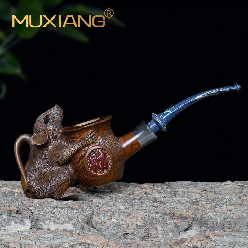 進口石楠木煙斗男士手工雕刻發財鼠煙斗實木傳統老式過濾專用煙具