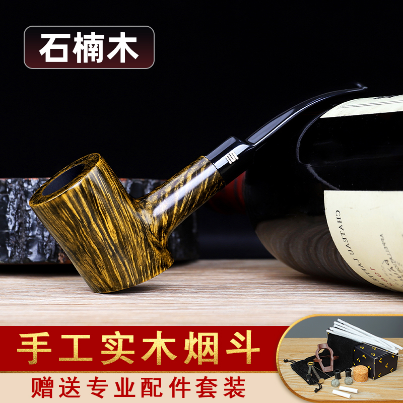 石楠木煙斗手工實木直彎柄錘子斗老式傳統男士過濾煙斗具專用配件