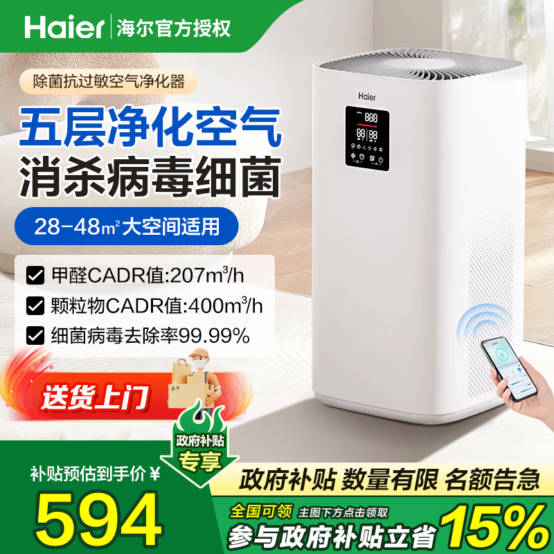 海爾空氣凈化器凈化機家用除甲醛小型室內吸寵物貓毛旗艦店KJ400