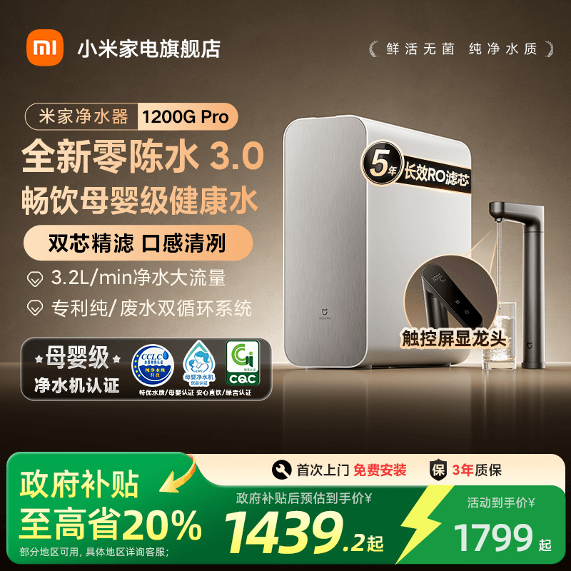【政府補貼20%】小米米家凈水機器1200GPro過濾器家用凈飲機廚房