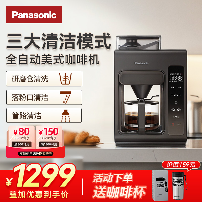 松下咖啡機黑魔方家用美式全自動研磨一體沖泡智能豆粉兩用A703