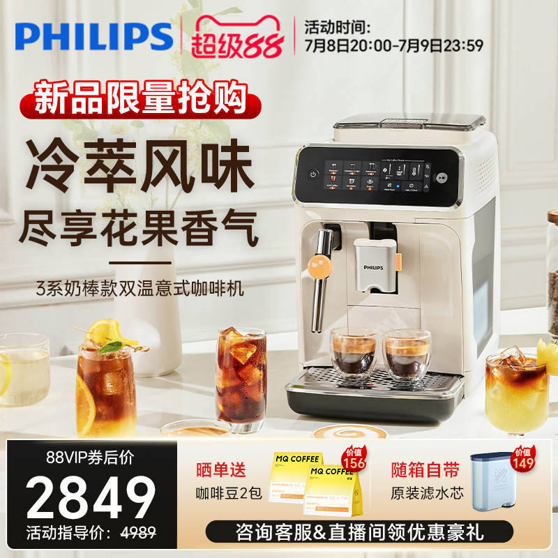 飛利浦新品全自動家用咖啡機冷萃低溫意式美式小型研磨一體EP3321
