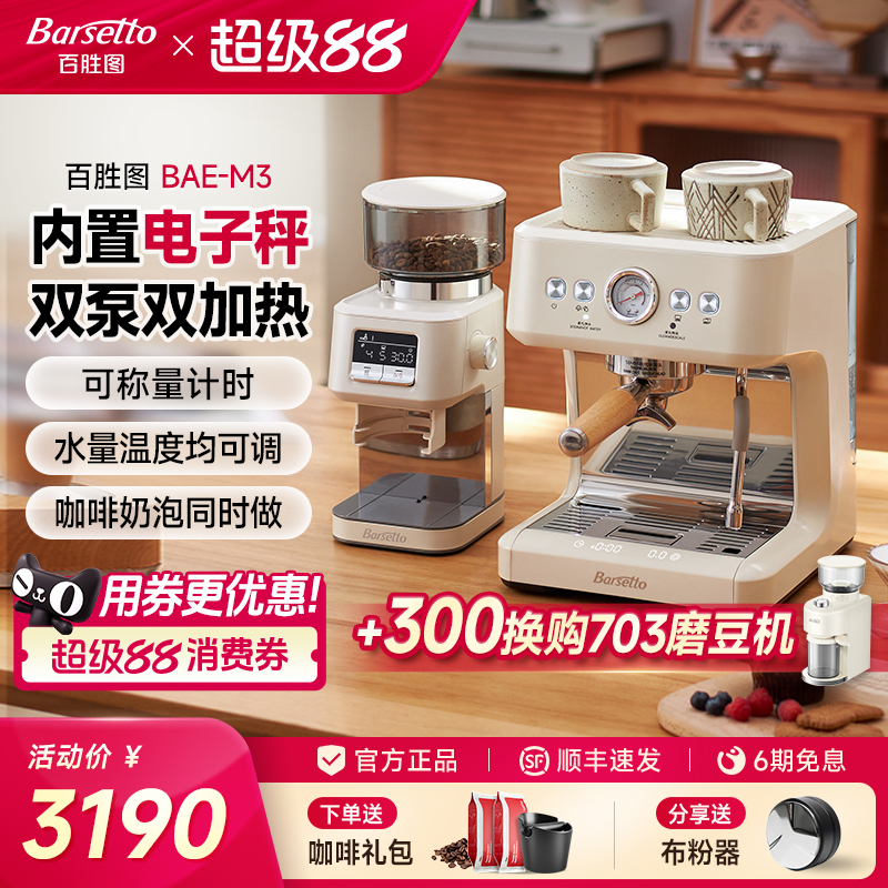 Barsetto/百勝圖M3咖啡機家用小型半自動帶電子稱意式濃縮萃取