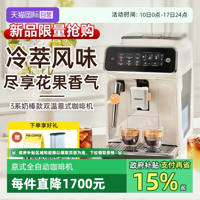 【自營】飛利浦全自動家用咖啡機冷萃低溫意式美式研磨一體EP3321
