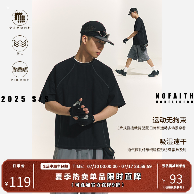NOFAITH速干華夫格短袖男女日系cleanfit打底純棉寬松休閑純白t恤