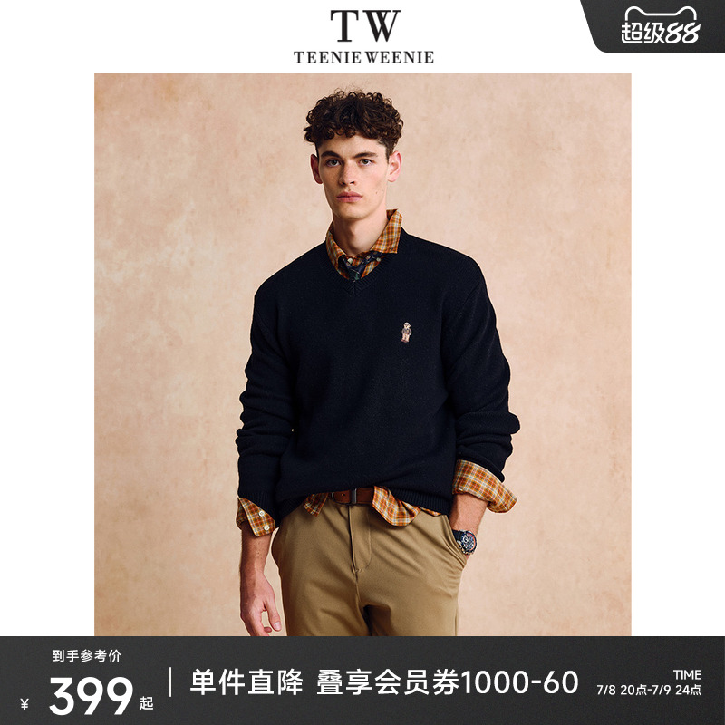Teenie Weenie小熊男裝日常潮流柔軟舒適保暖V領2025秋冬毛衣