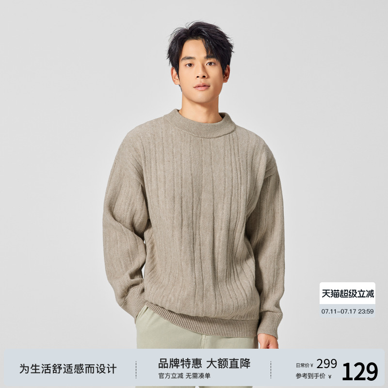 森柔毛衫|森馬針織衫男2024冬季新款發熱抗靜電打底衫半高領內搭
