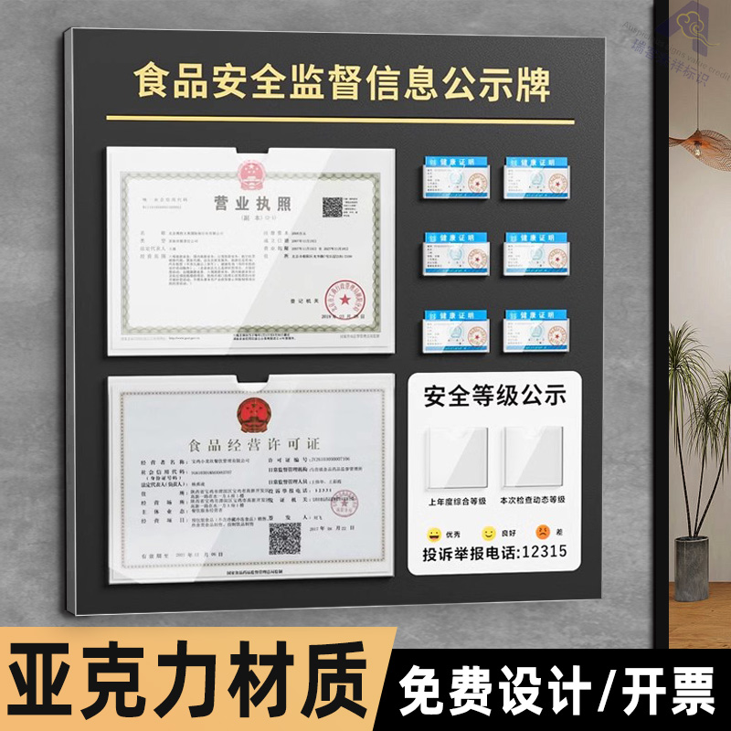 餐飲食品安全信息三合一公示欄衛生市場監督營業執照健康許可證框