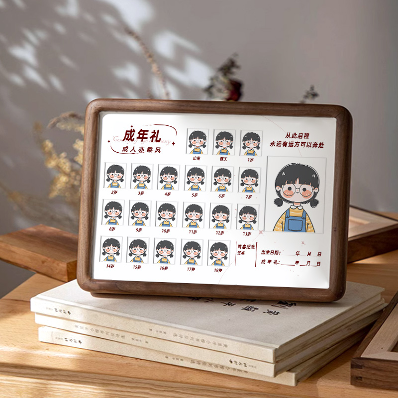 出生到十八歲成人禮紀念格相冊一歲一禮實木擺臺一寸照片送朋友禮