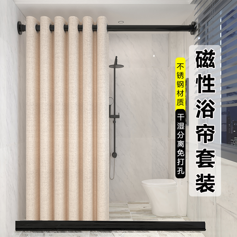 輕奢浴室防水浴簾擋水條磁性套裝免打孔窗戶門簾加厚防霉隔斷掛簾