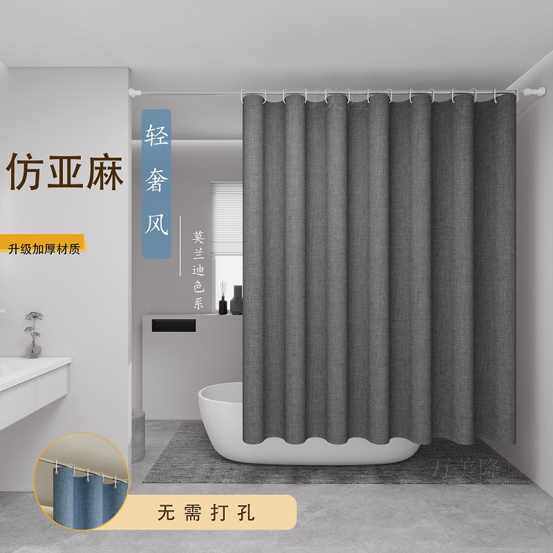 仿亞麻高檔防水浴簾浴室防霉擋水簾免打孔套裝加厚衛生間門簾隔斷