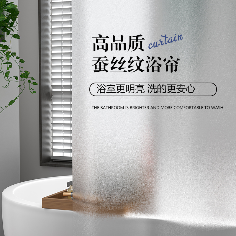 塑料浴簾a套裝帶伸縮桿直桿免打孔防水加厚防霉不透明浴室隔斷窗