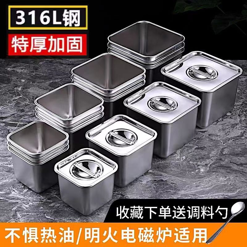 316不銹鋼方形調料罐商用帶蓋果醬盆廚房收納佐料盒豬油盆調味盅