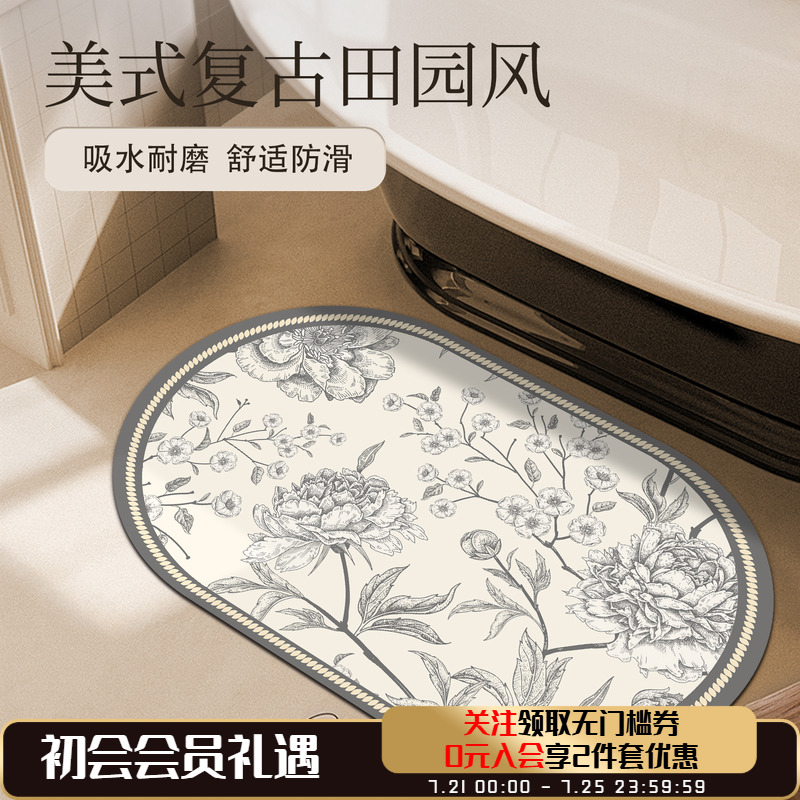 硅藻泥浴室吸水地墊衛生間廁所門口耐臟防滑腳墊高級感進門口地毯