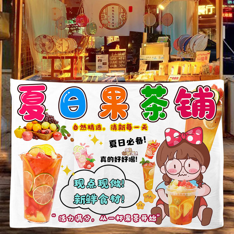 果茶掛布夏日飲品冷飲擺攤廣告布擺地攤擺攤布車后備箱背景布招牌