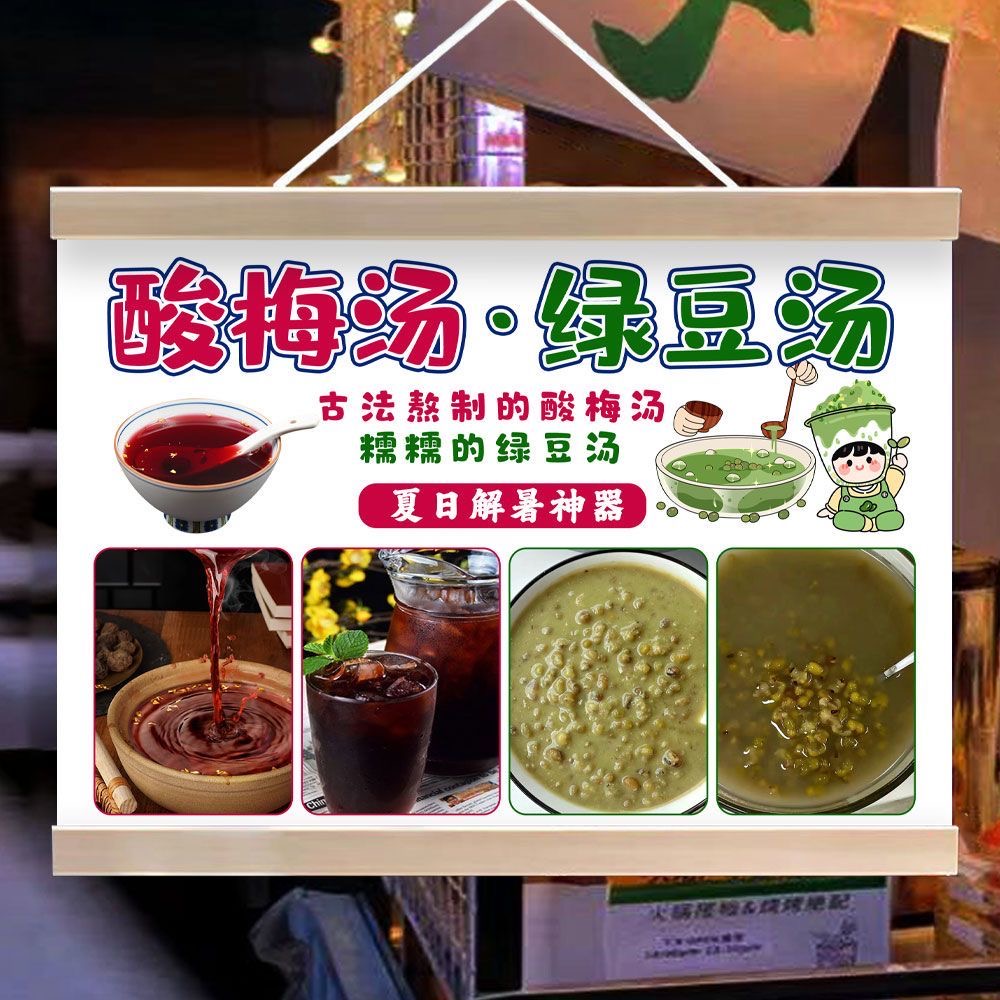 (酸梅湯綠豆湯)掛畫廣告布夜市夏日飲品移動推車擺攤招牌展示牌