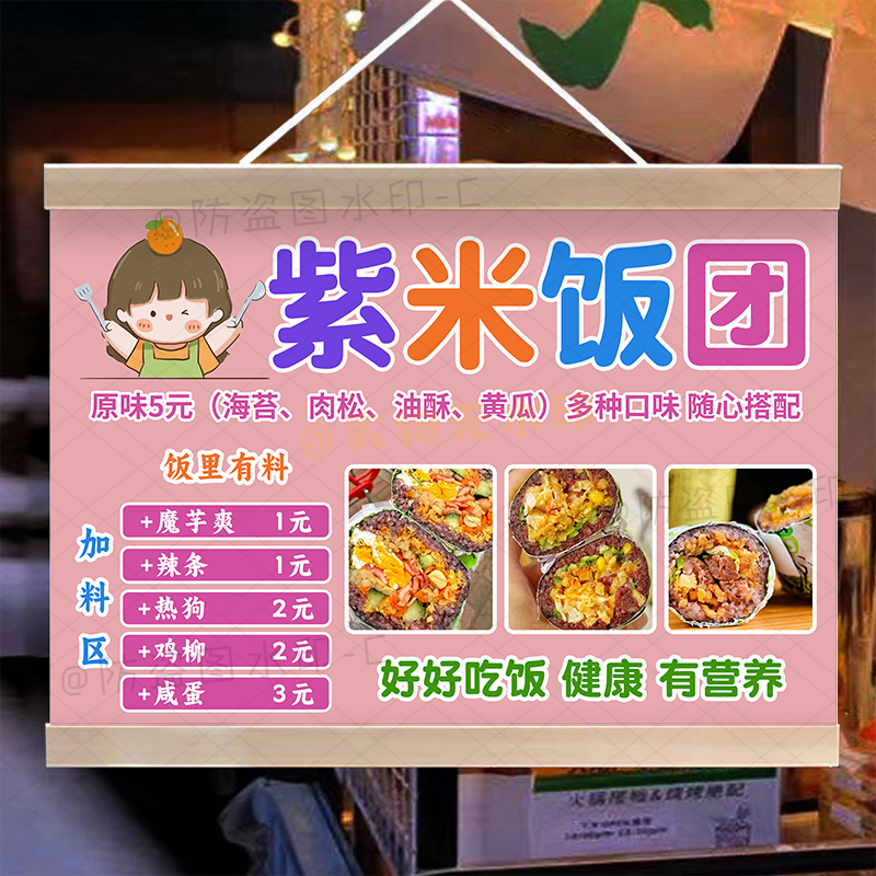 手工紫米飯團擺攤掛畫防水招牌三明治飯團攤位廣告布防水背景掛布
