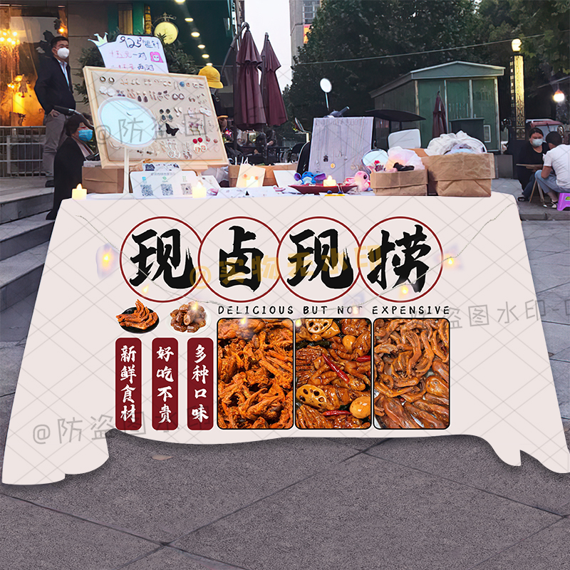 秘制鹵味串串香桌布擺攤廣告布網紅集市熱鹵攤位宣傳海報背景臺布
