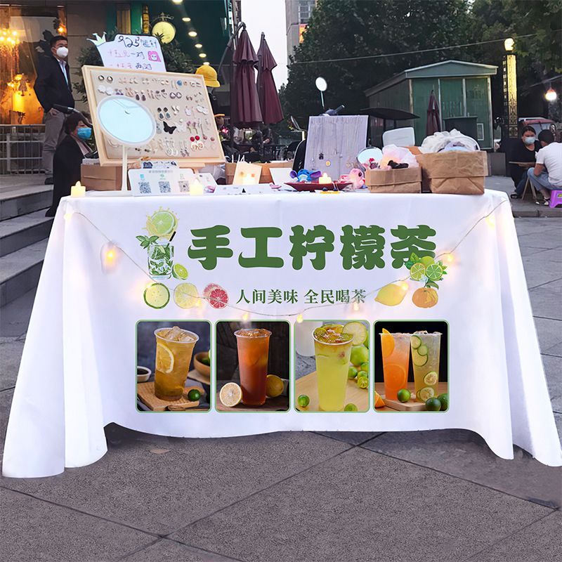 手工爆打檸檬茶桌布夏日水果茶夜市地推擺攤廣告布定制小推車掛布