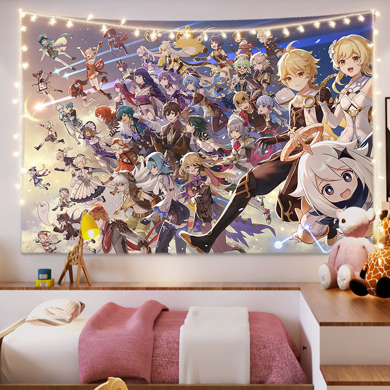 原神背景布可莉七七胡桃墻布寢室宿舍裝飾布置掛布個性創意禮物