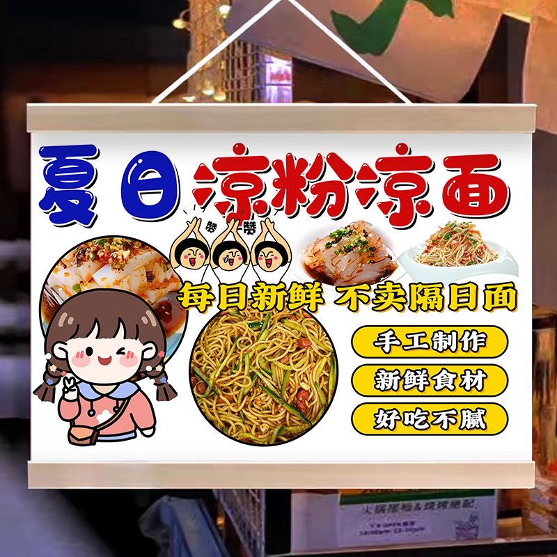 涼面涼粉掛畫廣告牌擺攤廣告布夜市擺地攤背景布地攤移動攤位廣告