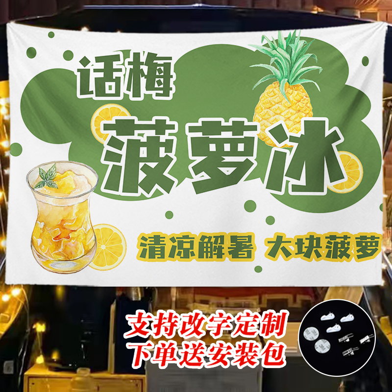 話梅菠蘿冰掛布擺攤廣告布夏季手工甜品果飲街邊小吃沙冰裝飾桌布