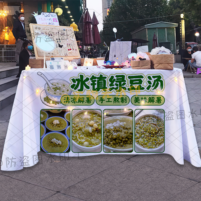 冰鎮綠豆湯擺攤廣告布網紅綠豆沙冰桌布集市蘇氏糖水鋪背景臺布
