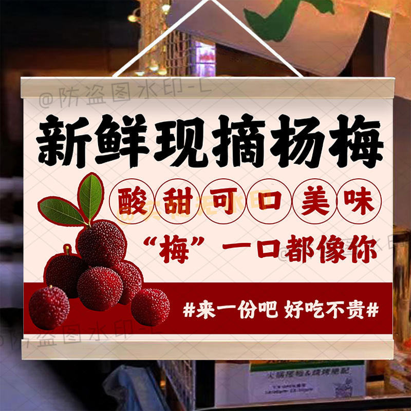 現摘新鮮楊梅擺攤掛畫防水廣告掛布仙居東魁楊梅采摘藍莓櫻桃招牌
