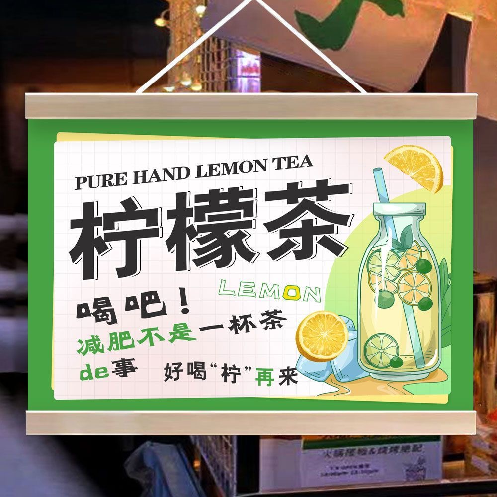 手工爆打檸檬茶掛畫夏日果茶網紅夜市移動路邊攤擺攤廣告推車招牌