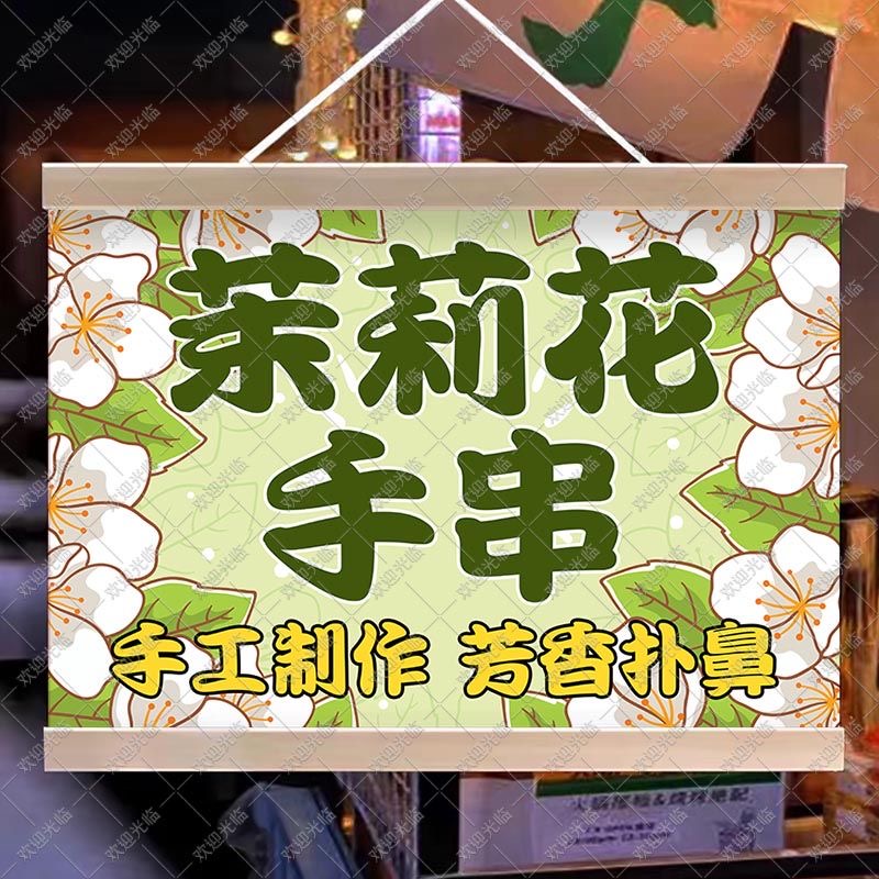 茉莉花手串掛畫廣告擺攤廣告布夜市擺地攤背景布地攤移動攤位廣告