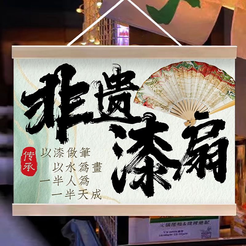 手作非遺漆扇掛畫擺攤廣告布防水招牌國風集市傳統文化攤宣傳海報